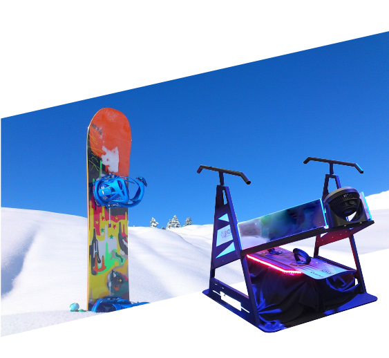 Équipé du casque VR, vivez une course palpitante de glisse avec le plaisir d’une belle descente en poudreuse dans la montagne enneigée. (Simulateur à partir de 08 ans).